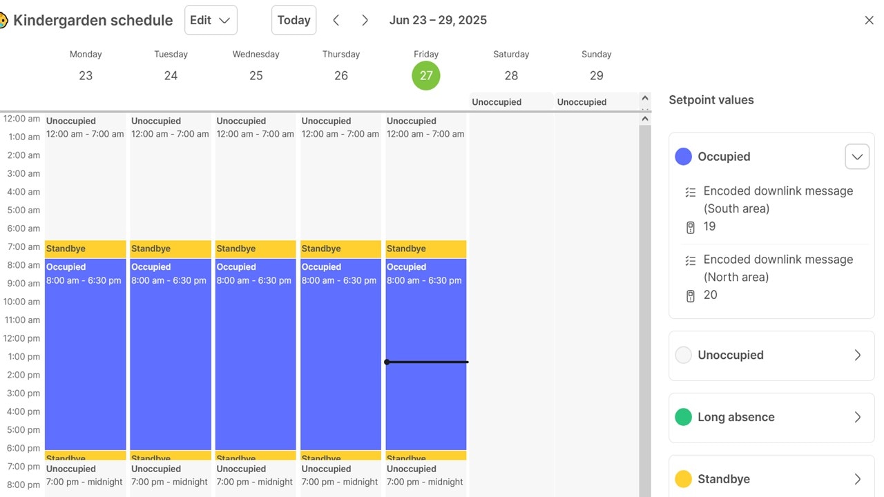 - Declare the building's weekly usage with time slot types. Example: occupied / not occupied