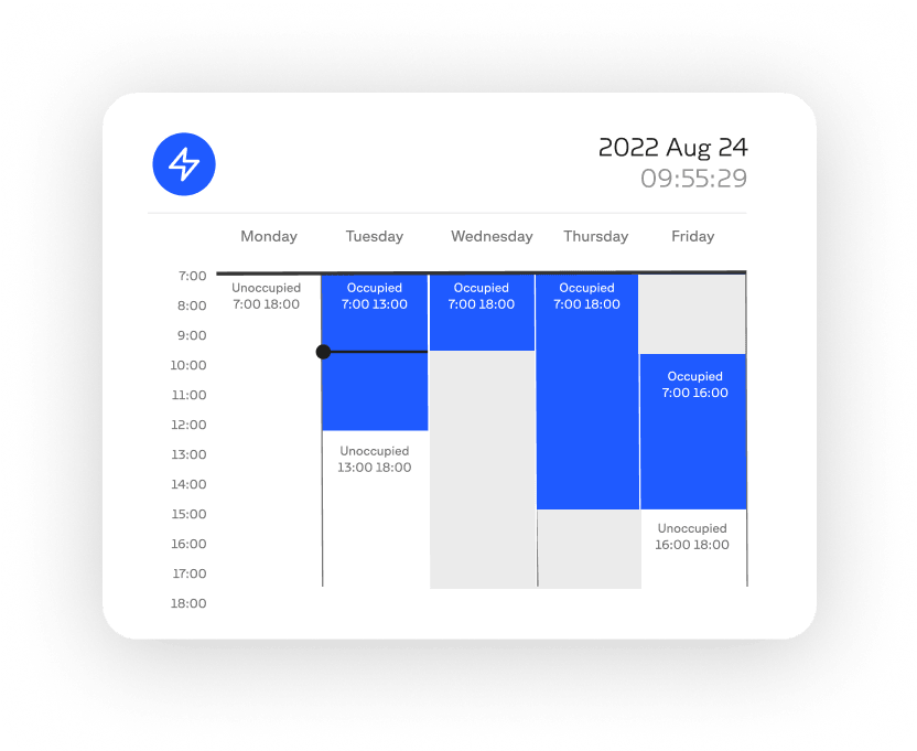 Verwenden Sie Workflows, um Ihre Zeitpläne und Sollwerte als Reaktion auf die Echtzeitbedingungen in Ihrem Gebäude zu optimieren.