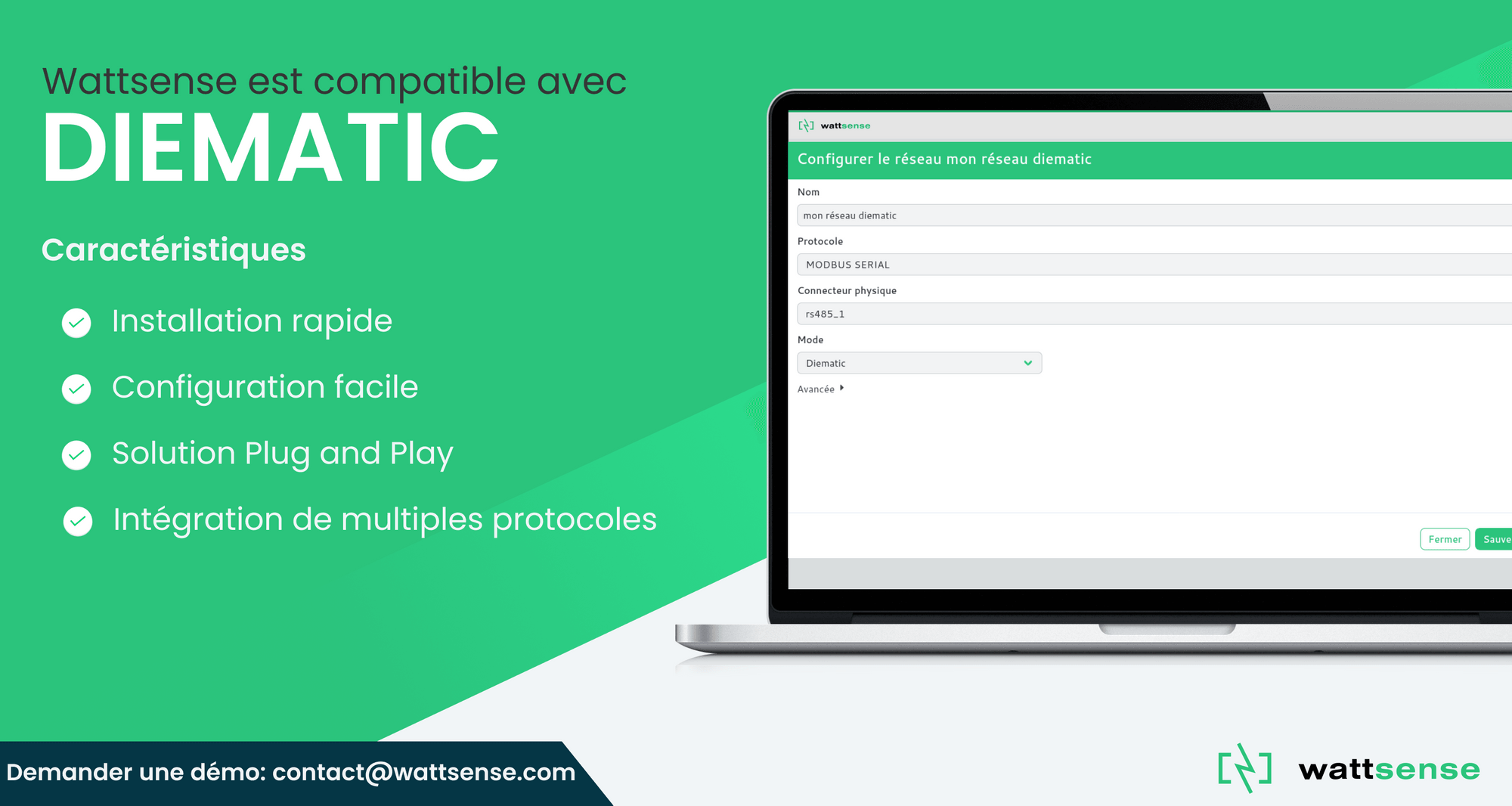 Afin d'aider les entreprises à se connecter facilement à leurs équipements et à surmonter ces obstacles, nous avons intégré le protocole Diematic dans la solution Wattsense.