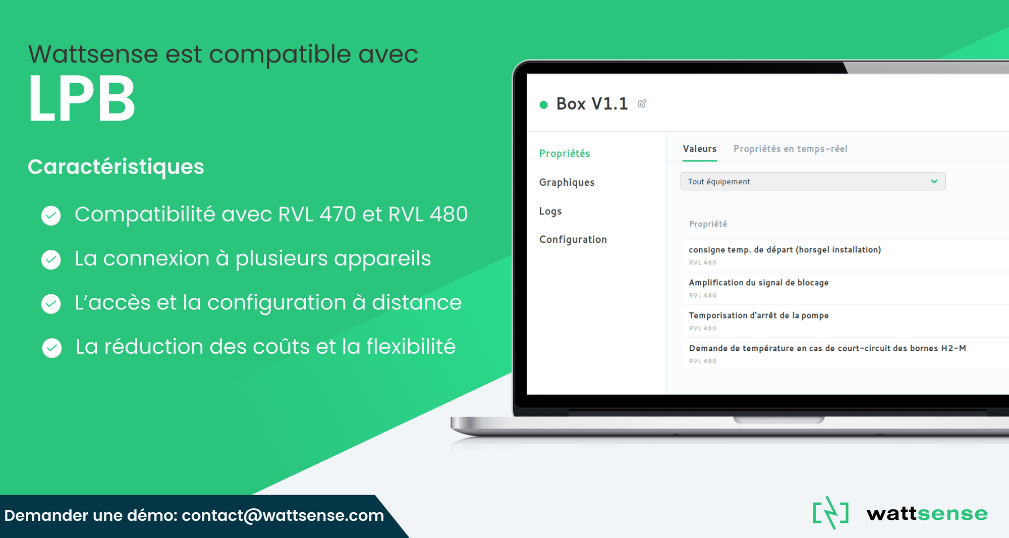 Les Siemens RVL 470 et RVL 480 sont des régulateurs de chauffage multifonctionnels destinés aux bâtiments résidentiels et non résidentiels. Le développement du pilote Wattsense a été réalisé et testé pour satisfaire aux exigences du réseau RVL et assurer une connexion transparente à notre service. Avec notre solution, la Box se connecte directement à l'équipement RVL ; c’est un atout significatif qui rend inutile le recours à une passerelle Siemens OZW.