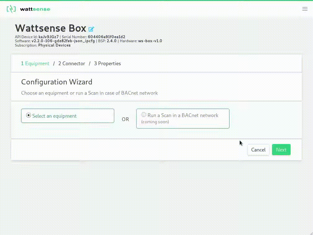 Actuellement, 520 équipements et leurs modèles sont intégrés par Wattsense. Nous garantissons donc que notre Box peut se connecter aisément à ces équipements à l'aide de l'assistant de configuration.