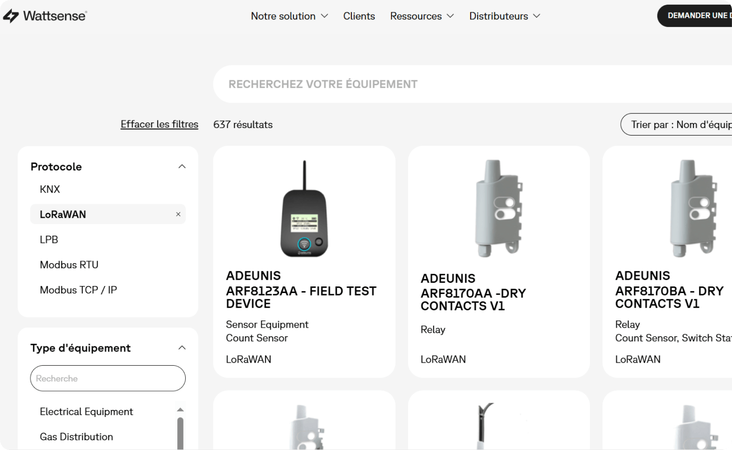 Wattsense va continuer à élargir la liste des équipements compatibles en fonction des besoins utilisateurs. Actuellement, plus de 1500 équipements sont disponibles et compatibles avec notre système IoT.