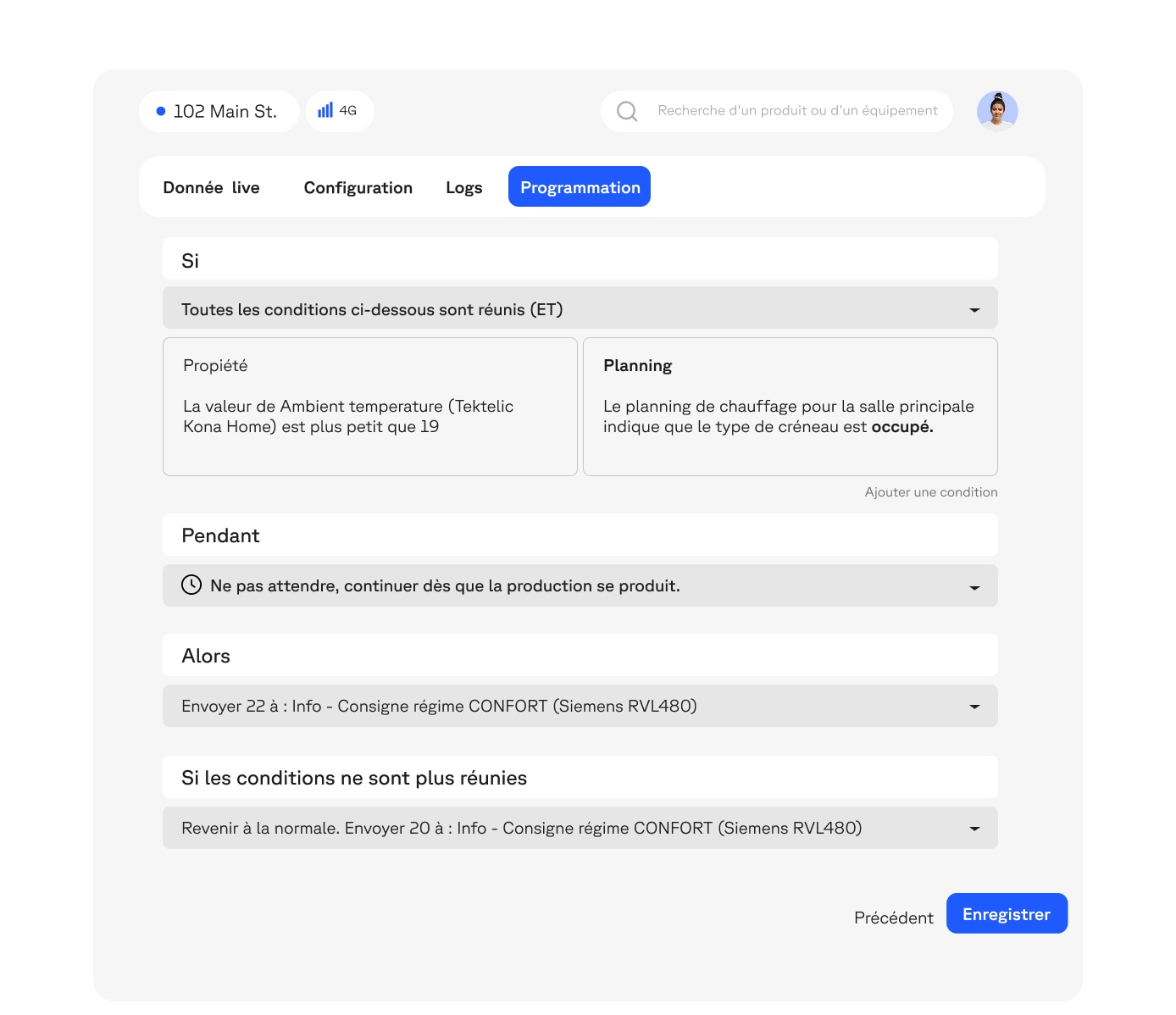 Utilisez des scénarios pour optimiser vos programmes et vos points de consigne en fonction des conditions en temps réel de votre bâtiment.