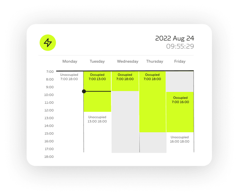 Define your building's occupancy schedule, associated rules and exceptions. We'll take care of the rest.